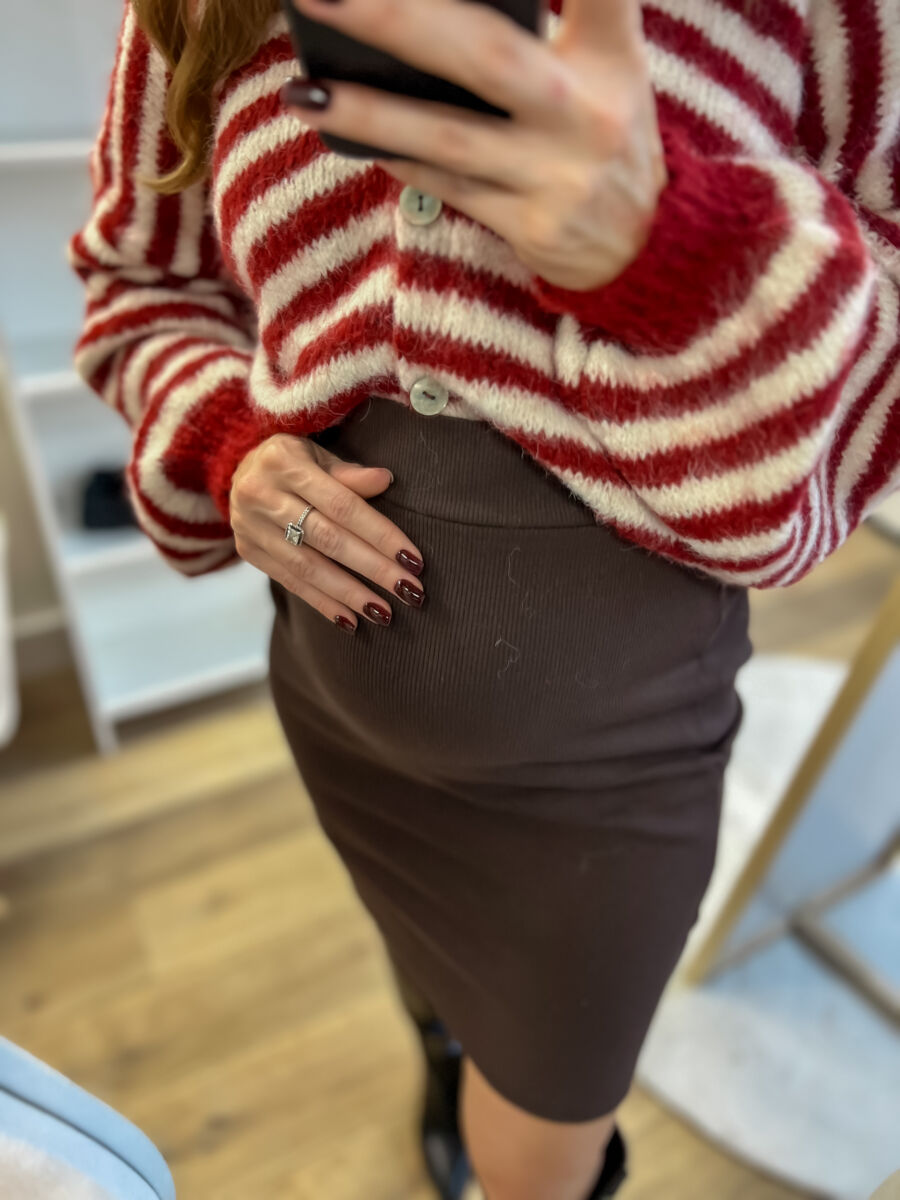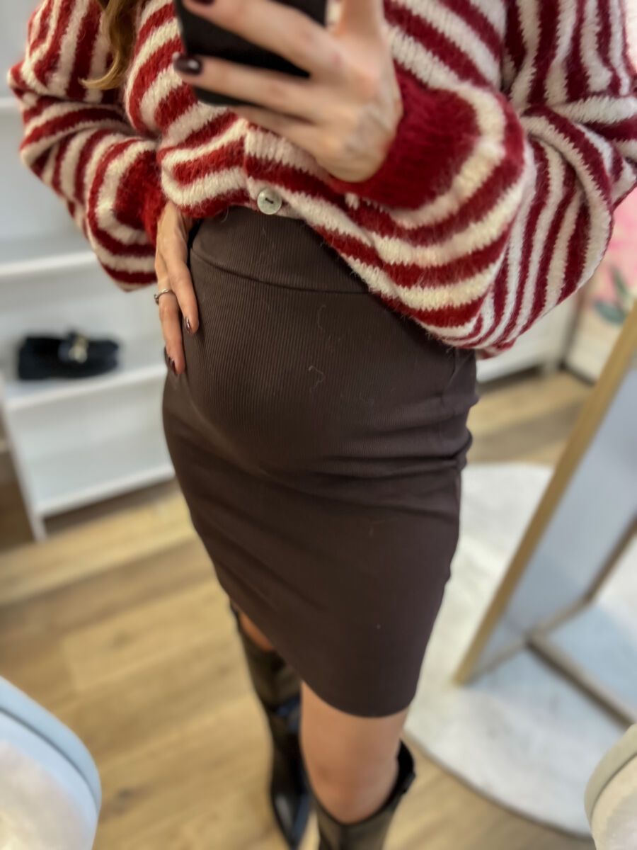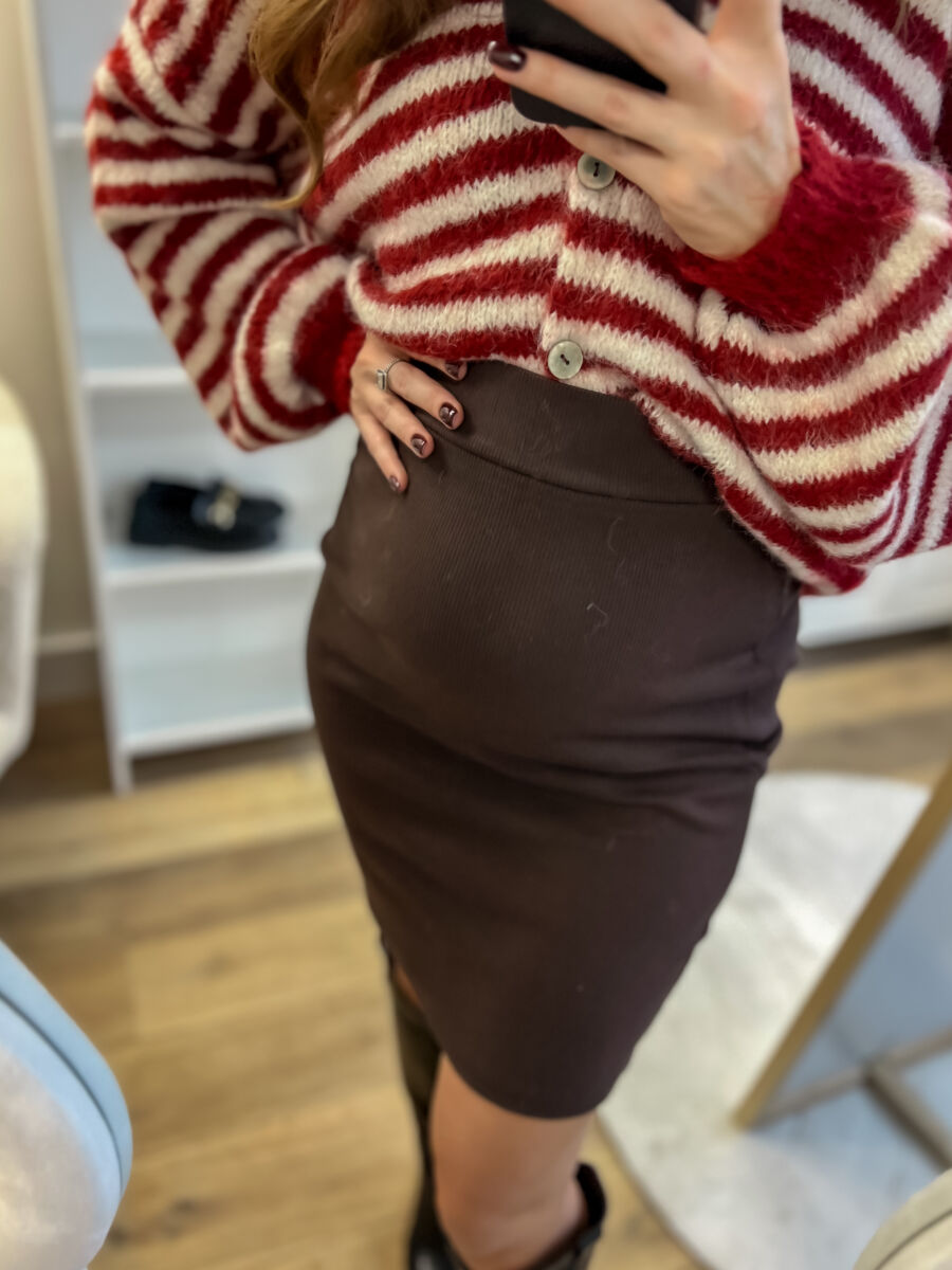 Czekoladowa spódnica basic w prążek